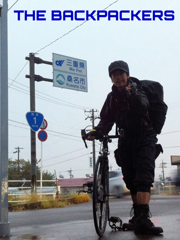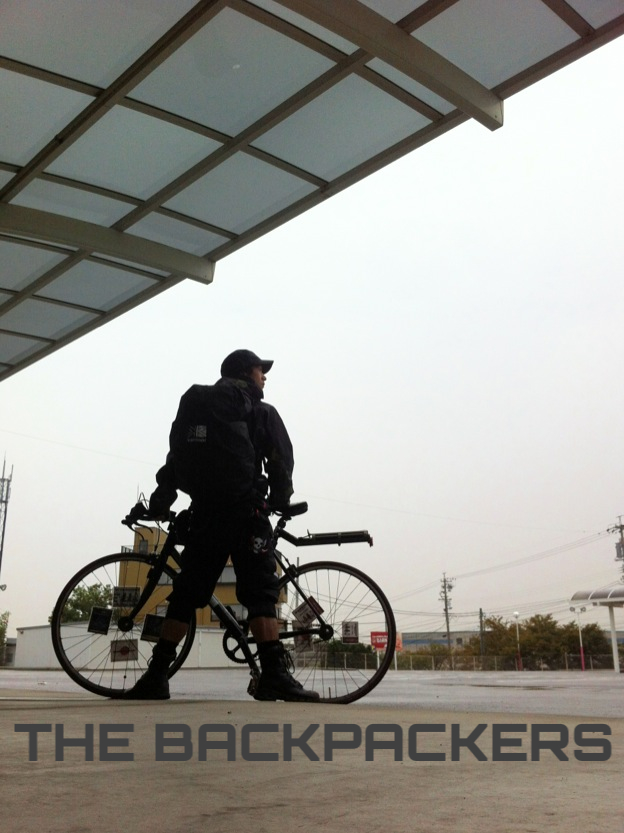 天竜川を過ぎた辺りで、1人でかいバックパックを背負い、黒いピストに乗る男性を発見した。