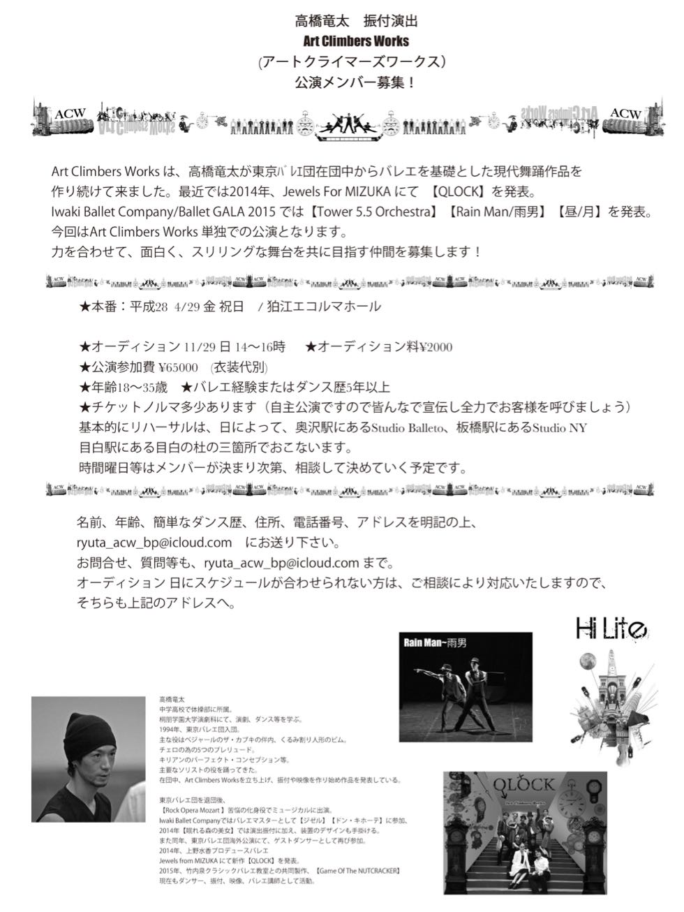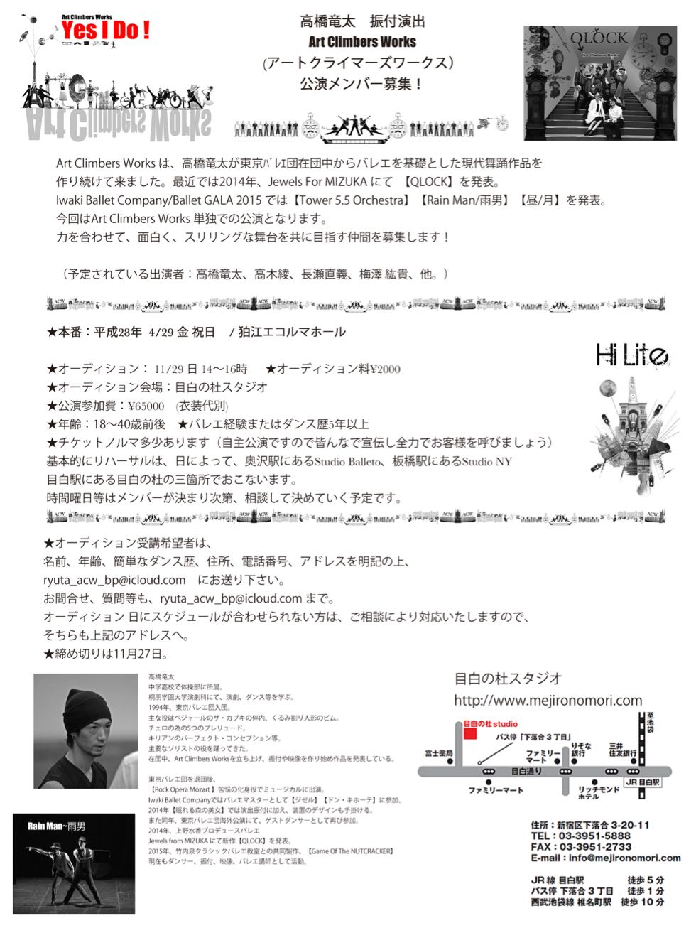 Iwaki Ballet Company/Ballet GALA 2015 では【Tower 5.5 Orchestra】【Rain Man/雨男】【昼/月】を発表。