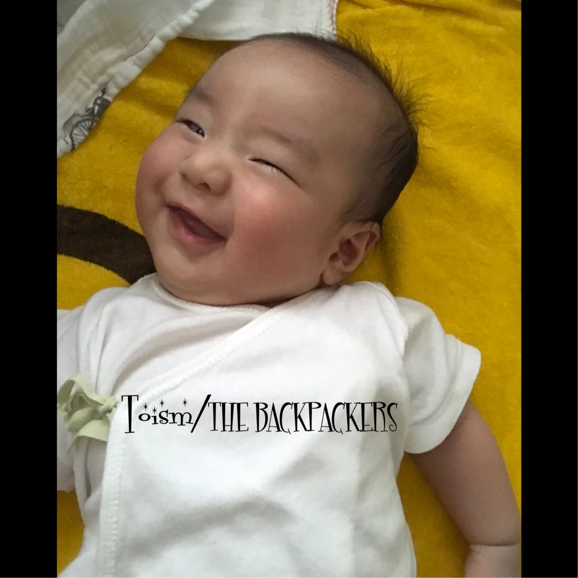 生後2日から、顔の筋肉を動かす練習らしい笑顔をよくしてたが、2週間もしたら、何かに反応して笑う様になっていた!