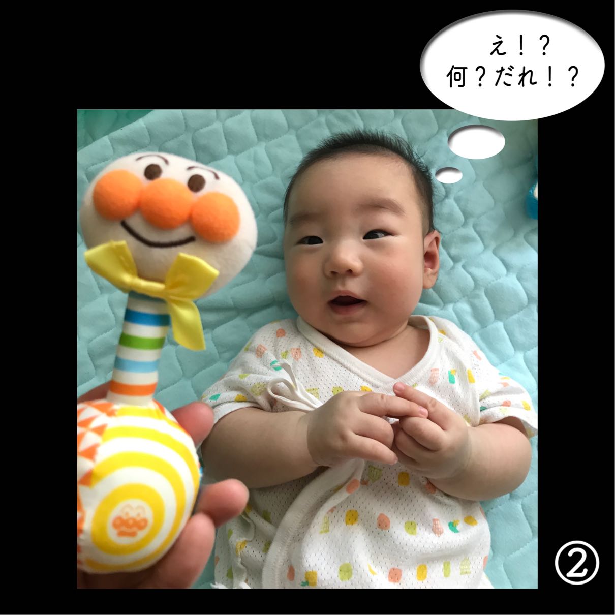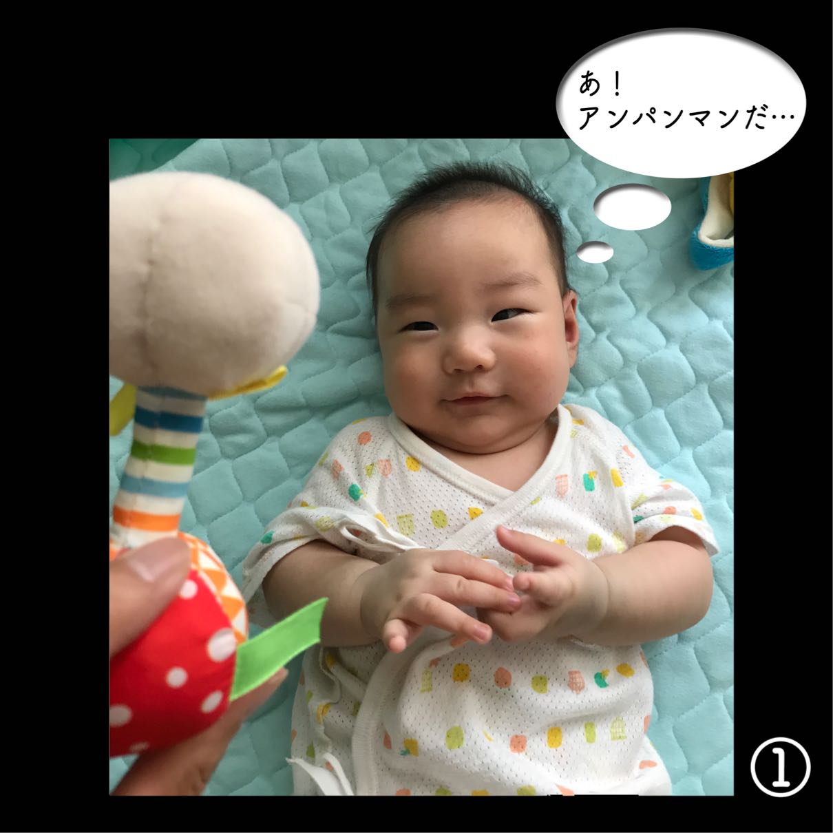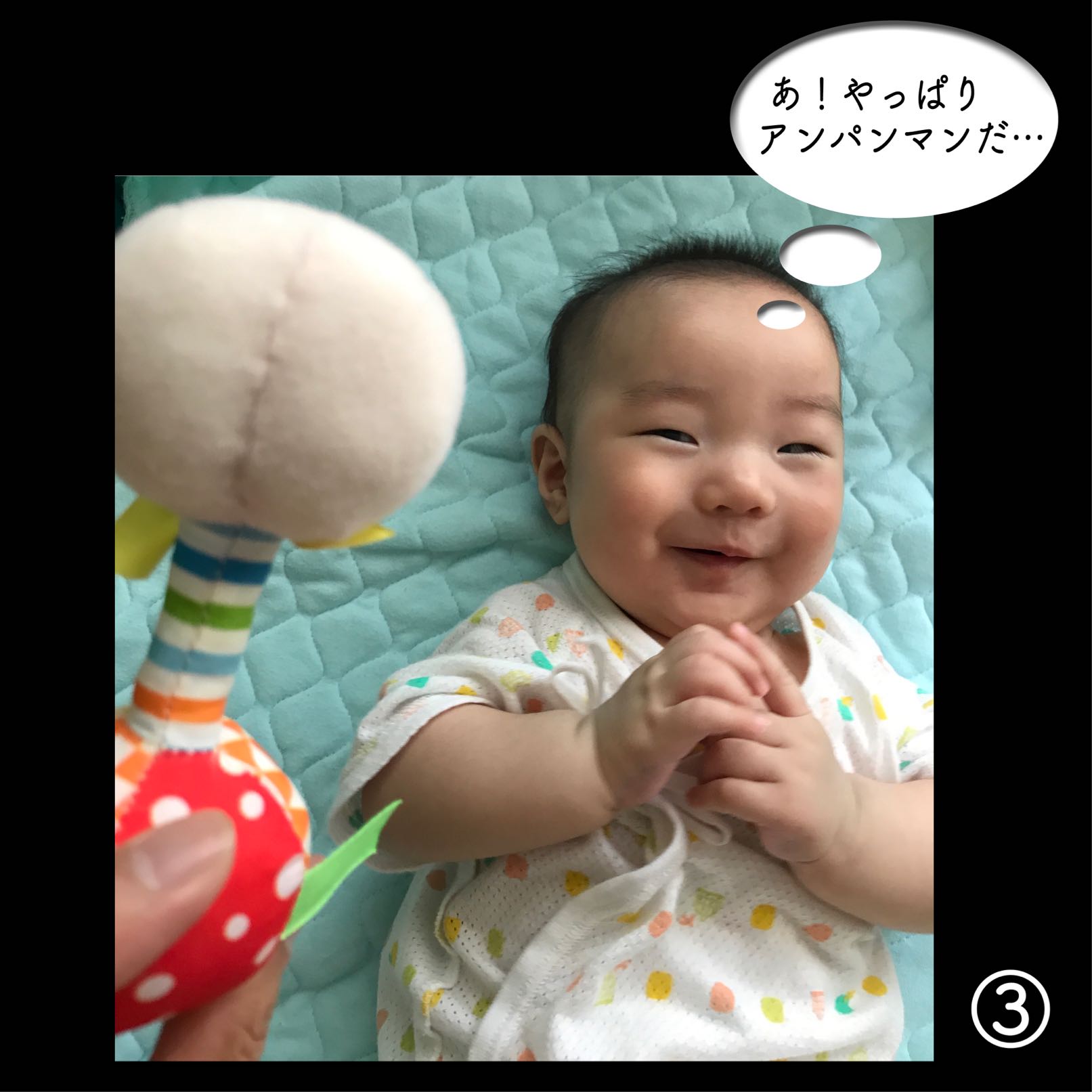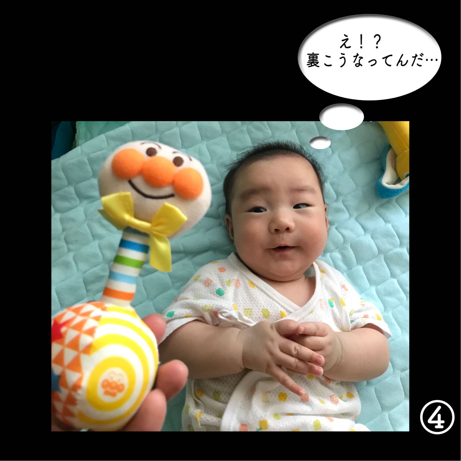 「寝がえり出来たーー⁉︎」と夫婦で飛び起き撮影。