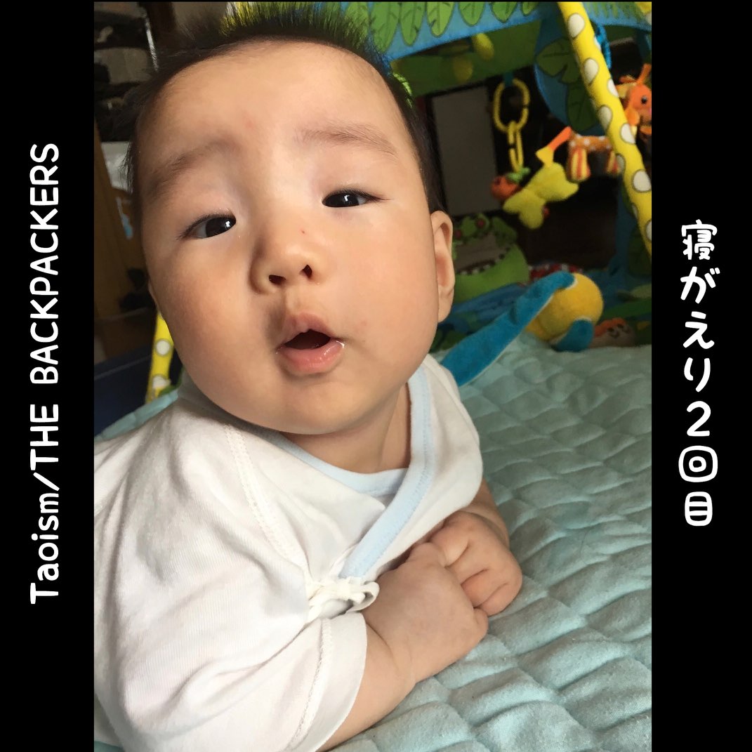 夜11時近く、汰鳳が寝ているベッドルームから泣き声が聞こえたので見に行くと、寝がえりをうち肘を立てた、朝見た状態で大泣き…シュール過ぎだ!
